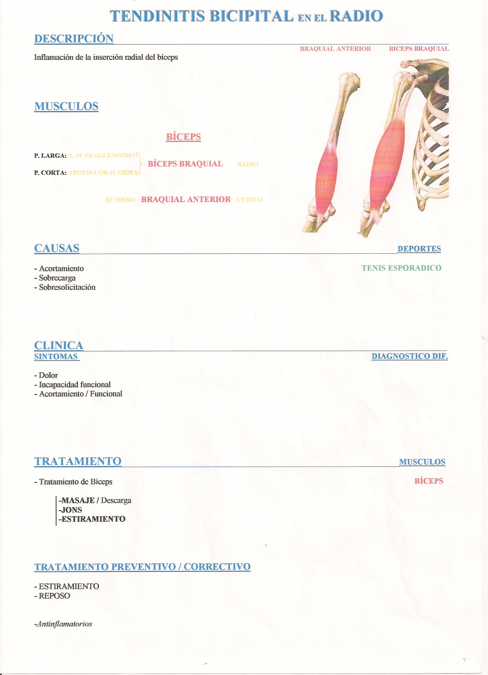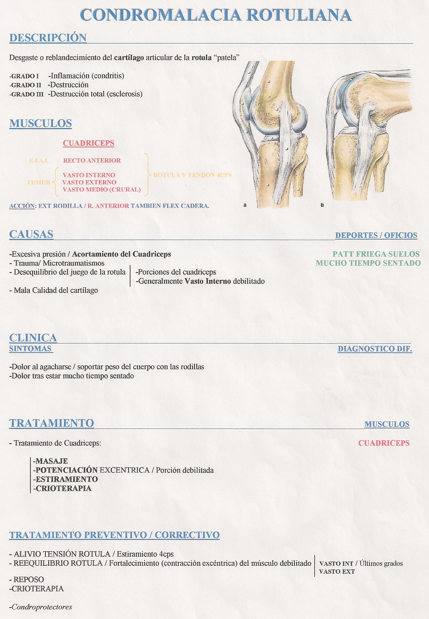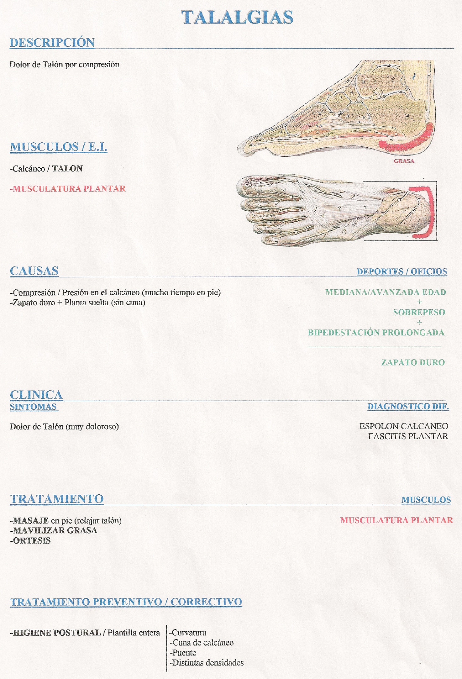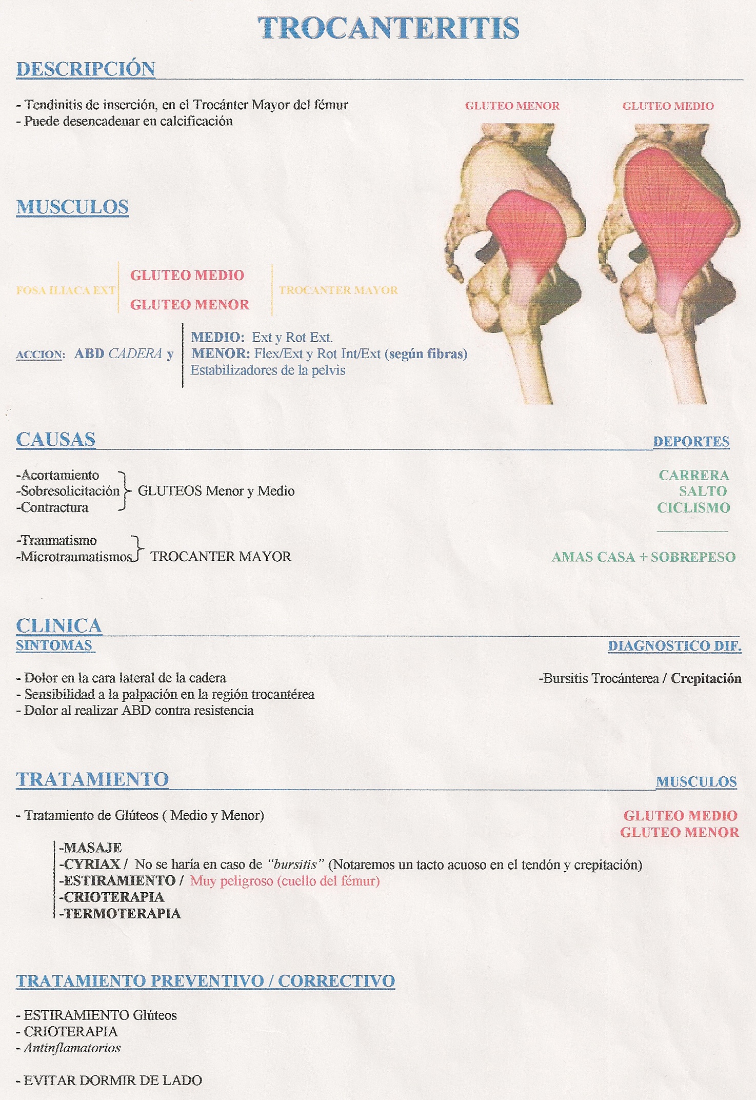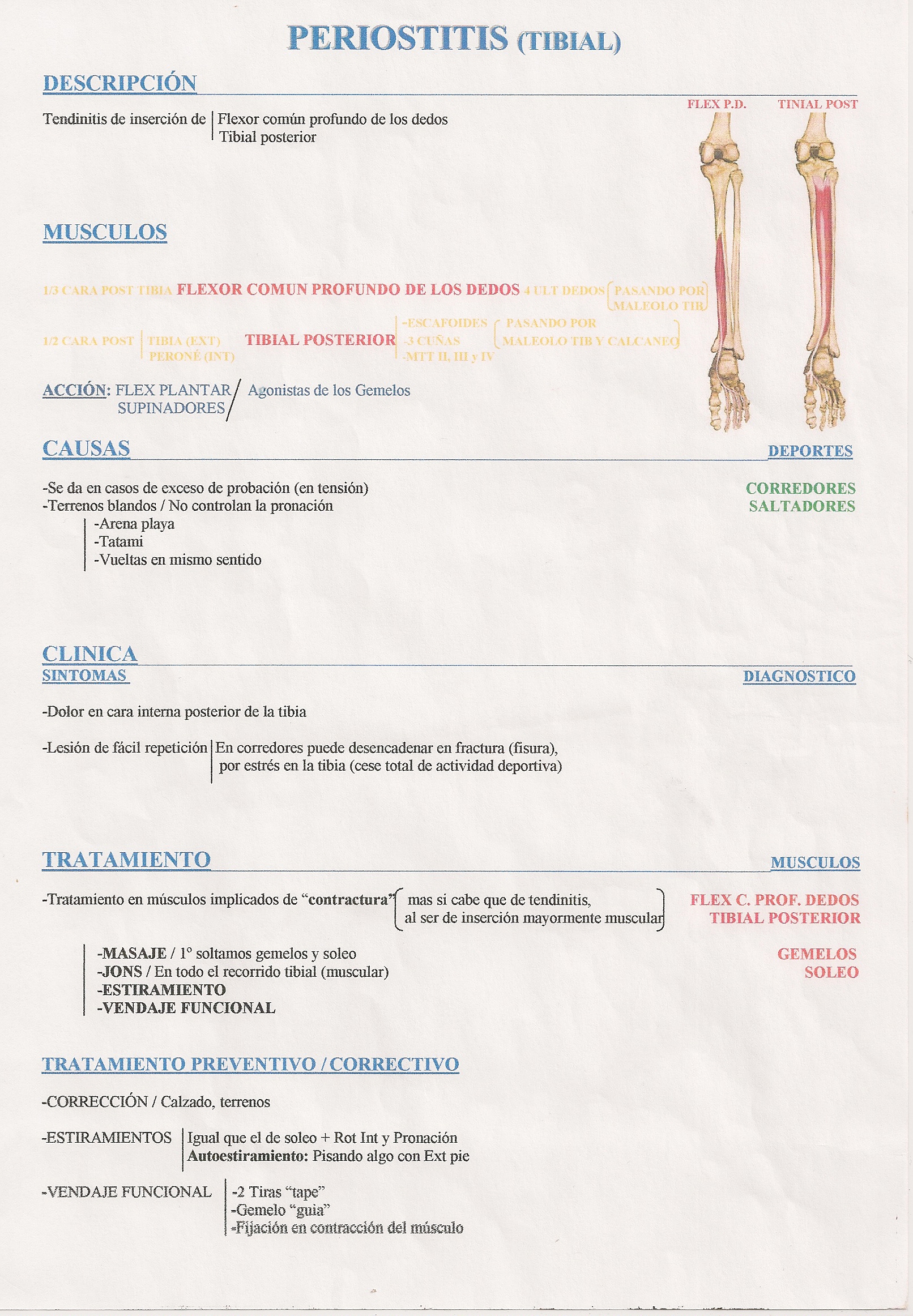 - TENDINITIS - * EPICONDILITIS (CODO DE TENISTA). * EPITROCLEITIS (CODO DE GOLFISTA). * MANGUITO DE LOS ROTADORES. * TENOSINOVITIS DE QUERVAIN. * TENDINOPATIA BICIPITAL EN RADIO. * TENDINOPATIA AQUILEA. * TENDINOPATIA DE PATA DE GANSO. * ITBS (TENDINOPATIA DE FASCIA LATA). *TENDINOPATIA ROTULIANA. * TROCANTERITIS. * PUBALGIA. | - OTRAS - * CONTRACTURA. * CERVICALGIA. * LUMBALGIA. * ESGUINCE. * CONDROMALACIA. * SINDROME DEL TUNEL CARPIANO. * FASCITIS PLANTAR. * PERIOSTITIS. * TALALGIA. |